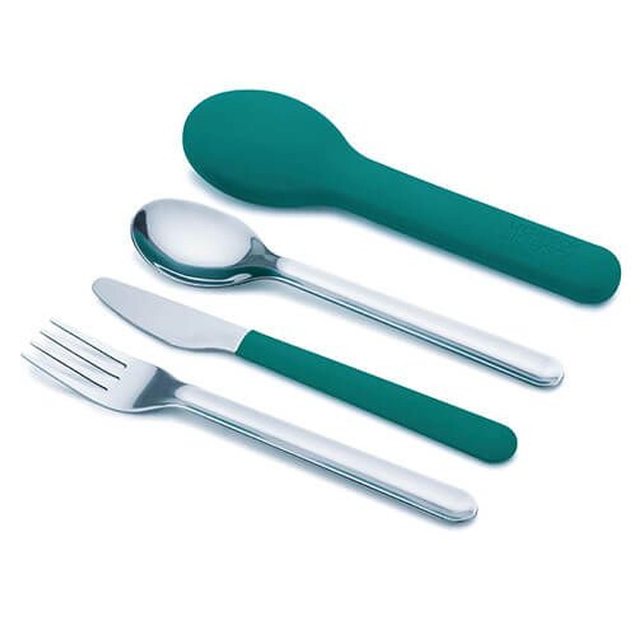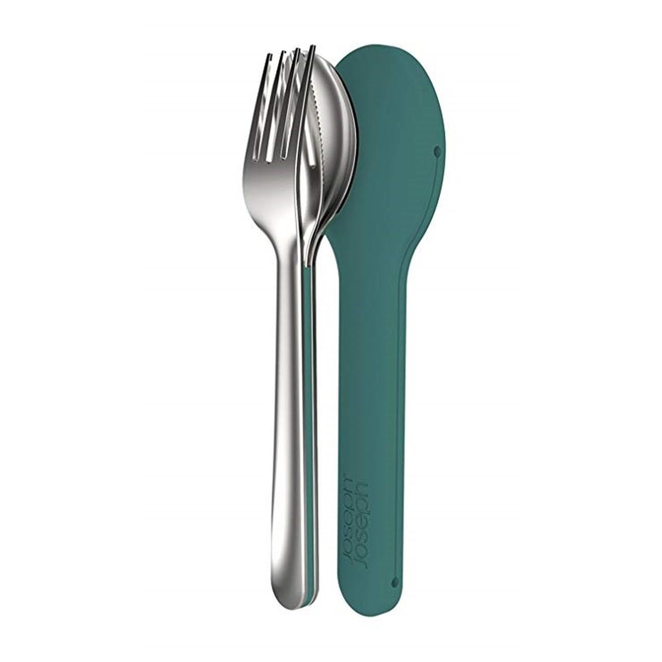 This compact, stainless steel cutlery set is perfect for picnics or eating on the go, it consists of a knife with a magnetic handle, a fork and a spoon that fit neatly together inside a silicone carry case.