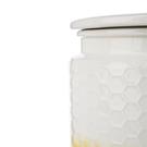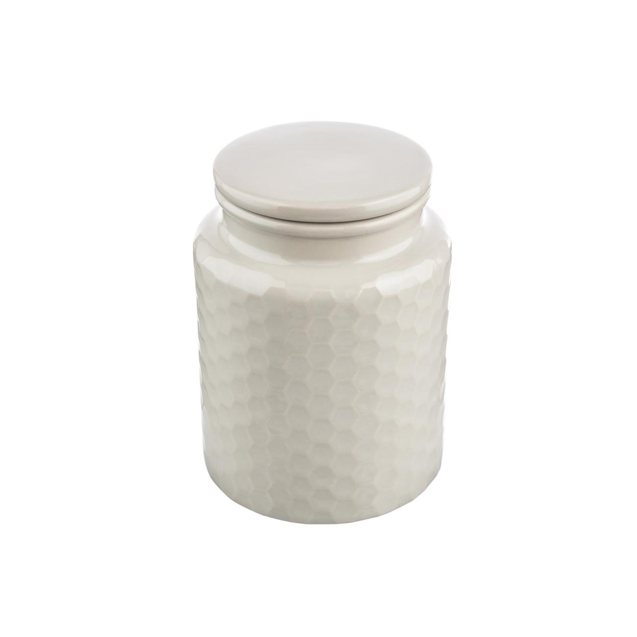 Ceramic storage canister with silicon seal, airtight lids for freshness and honeycomb embossed designs. Ideal for storing dry goods, from teabags to biscuits.