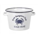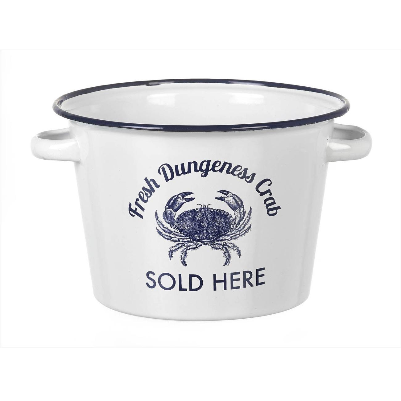 This enamel seafood bucket from Parlane is ideal for serving crabs, oysters and other shellfish. The white and blue rimmed bucket is a reminiscence of the Mediterranean.