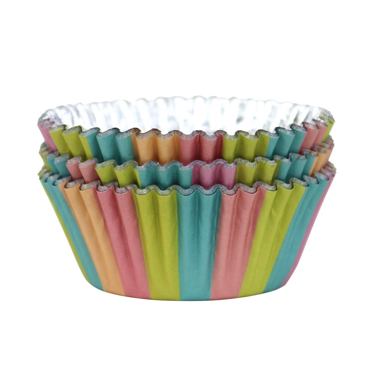 These PME Unicorn Colours Foil Lined Baking Cases add decorative colour and fun to a variety of sweet and savoury treats. Perfect for baking cupcakes, fairy cakes and buns. Crimped paper with greaseproof finish and metallic coating on the outside.